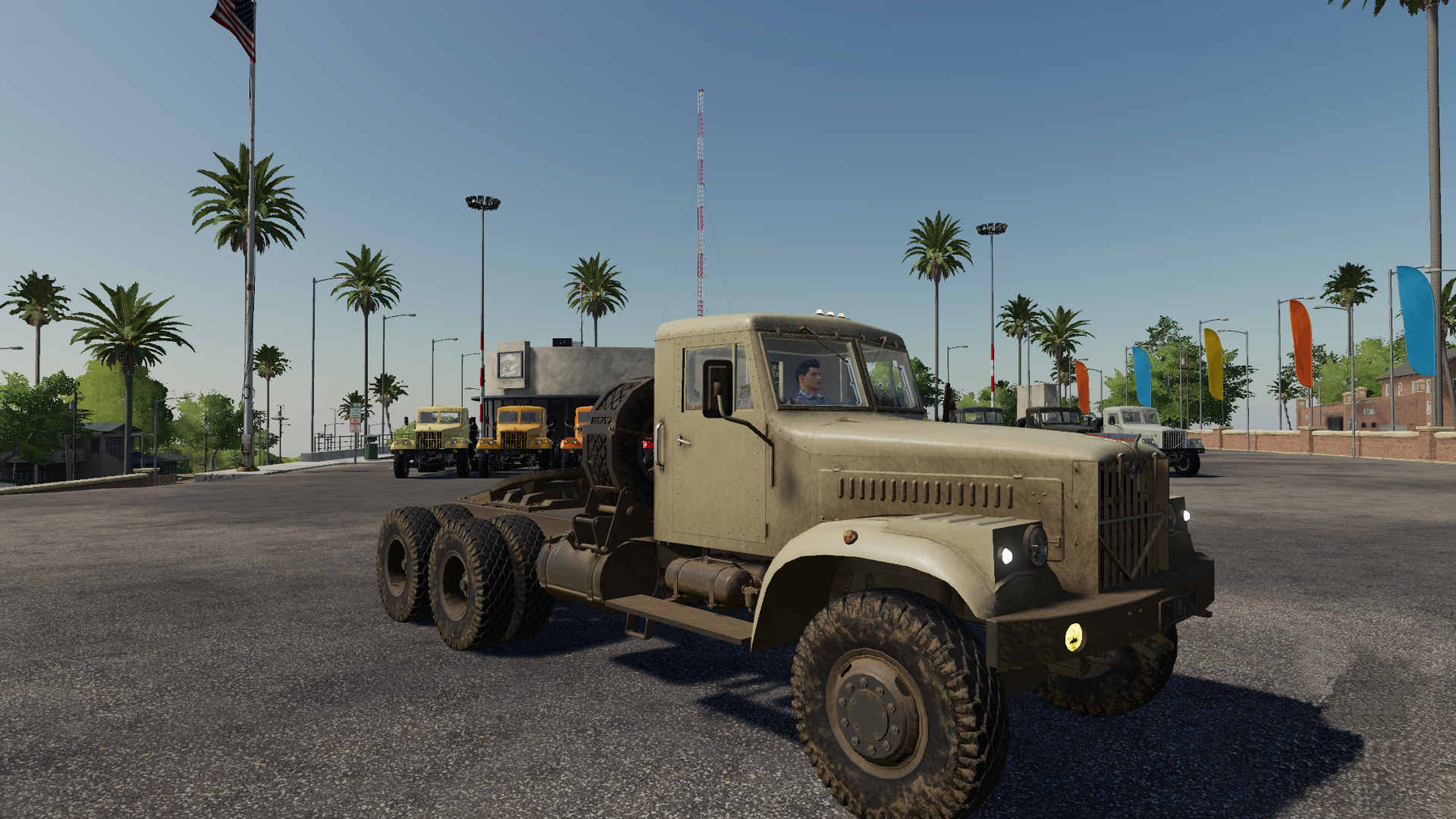 MOD KRAZ 258 V2.3.1 FOR FARMING SIMULATOR 2019 KrAZ 258 - 6x4 truck tractors manufactured by the Kremenchug Automobile Plant, produced in the period from 1966 to 1977. The KrAZ 258 vehicle is designed for transportation of goods as part of a road train with a total weight of up to 30 tons. The composition of the pack: KrAZ-258 road tractor: - cost: 38000; - engine: YaMZ-238, 240 hp; - speed: 82 km / h; - configuration of the engine, wheels, design and color of the cabin; - mirrors, animation of the suspension, cardan shafts, fan, instrument arrows, pedals, gear shifting, the dashboard is as animated as possible. Semi-trailer tanker-tanker TZ-22: - cost: 21000; - transports fuel. - volume of 22,000 liters; - the function of refueling equipment; - wheel configuration, design and color (primary and secondary). Semi-trailer tank-water carrier AAPT-4: - cost: 20,000; - carries water. - volume of 22,000 liters; - wheel configuration, design and color (primary and secondary). Dump semi-trailer with side unloading SP-22M: - cost: 20,000; - transports all bulk cargo. - volume of 22,000 liters; - indication of the loaded quantity (option); - wheel configuration, design and color. Semi-trailer grain carrier with bottom unloading DNESTR-9357-02: - cost: 26500; - transports: wheat, barley, oats, canola, sunflower, soybeans, corn, seeds, chips, fertilizer, lime; - volume 60,000 l.; - wheel configuration, design and color (body and awning). Semi-trailer trawl CHMZAP-5523: - cost: 14000; - enhanced fixation of equipment; - wheel configuration, design and color; - wide flooring for large equipment (option). ChMZAP-99064K platform semi-trailer - cost: 19,000; - tension belts; - wheel configuration, design and color; - support for the global script FS19_EasyAutoLoad from alfalfa6945 (automatic loading of pallets and bales). Semi-trailer universal D-375 tank: - cost: 20,000; - volume 17000 liters; - wheel configuration and colors; - indication of the loaded quantity (option). On all models, the wheels are unified, suspension animation, 2 tire options and disc color change. All models get dirty and washed, age, painting based on UDIM, all lighting equipment according to FS-19 standards, animation is done on bones. The original models have been greatly reworked: the dimensions, appearance, shape have been corrected, details have been added, redundant ones have been removed, transferred to UDIM, bones, decals, etc. have been added. Authors of original models: Glushak, ZombiK, Silak_68. Tires: Axary. Many thanks to Axary for help and advice. Special thanks to demon9467 for advice on real analogues of the presented models and for help in testing. Required mod: FS19_EasyAutoLoad from alfalfa6945 v.2.0 List of changes: - physics correction. Corrected wheels. Minor XML fixes. - Added a semitrailer tanker TZ-22, with a volume of 22000 liters. - Added a semitrailer tank-water carrier AAPT-4 with a volume of 22000 liters. (based on a real-life fire modification). - added a semi-trailer dump truck with side unloading SP-22M, with a volume of 22000 liters. - added a semitrailer grain carrier with bottom unloading DNESTR-9357-02, volume 60,000 liters. v.2.1. List of changes: - added trawl ChMZAP-5523; - the dimensions of the SP-22M have been corrected. Now its length matches the real prototype. v.2.2. List of changes: Added container ship ChMZAP-99064K. In the game it functions as a platform with belts and automatic loading of bales and pallets. For autoloading to work, you need the FS19_EasyAutoLoad mod from alfalfa6945. Without it, auto-loading of bales and pallets will not work. v.2.3. List of changes: Added universal tank D-375. Melee visual changes and adjustments to the physics of the ChMZAP-5523 trawl (the fixation of the transported vehicle and the stability of the trailer have been improved). v.2.3.1. List of changes: Fixed work of dynamic hoses. Fixed wheel coloring. The position of the inscriptions on the D-375 tank has been corrected. Added color `Steel` to base colors of the tank. Minor visual changes.
