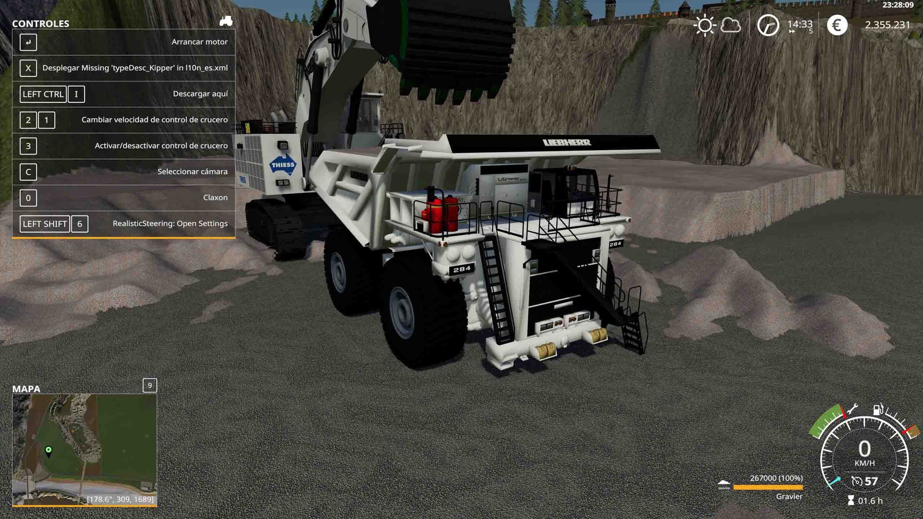 Mod LIEBHERR T284 AND CATERPILLAR V2.0 for Farming Simulator 2019 - Dust now comes out of the wheels when it is moving.