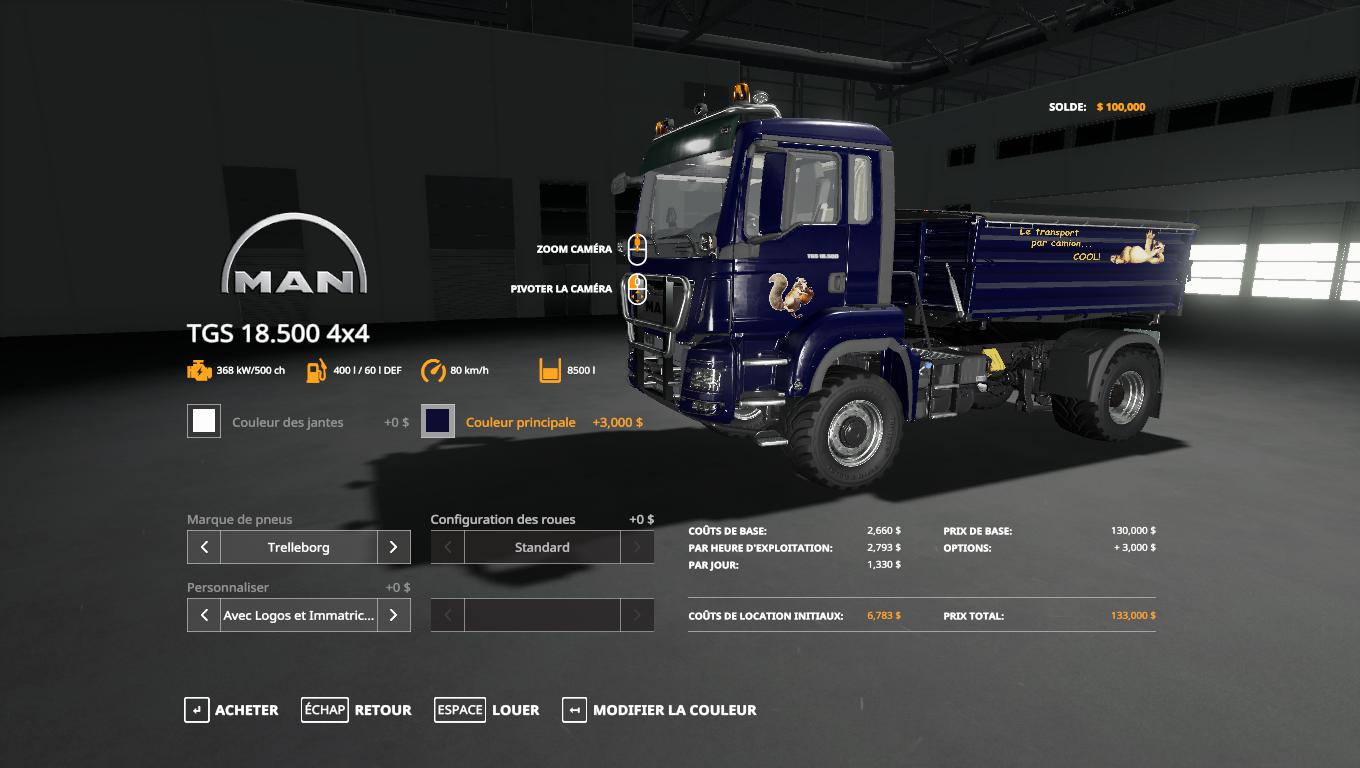 MOD MAN TGS18500 TIPPER V1.0 FOR FARMING SIMULATOR 2019 Envelope from fs15, mod has a choice of colors, engine settings. Credits: FHarvey |
