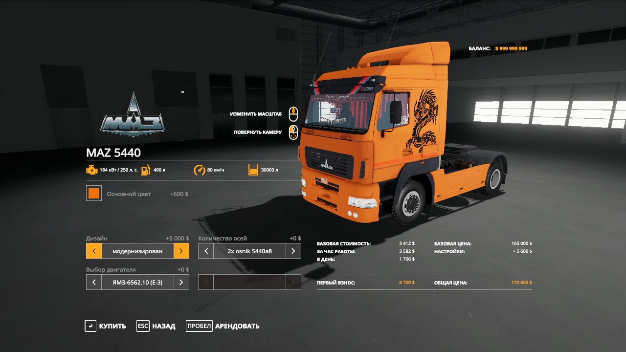 MOD MAZ 5440 A8 AND A9 V1.0 FOR FARMING SIMULATOR 2019 Maz 5440 A8 and A9 in one bottle. Credits: Lex90 |