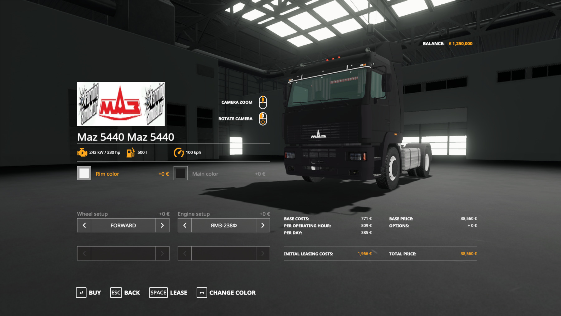 MOD Maz 5440 turbo v1.0.0.0 for Farming Simulator 2019 The game has: 4 types of wheels, 3 engines (it does not affect the maximum 100 km / h, but it is felt by traction), and there is also a choice of the main color of the cab and a choice of the color of the discs. Credits: алексей сапунов (alex1985) |