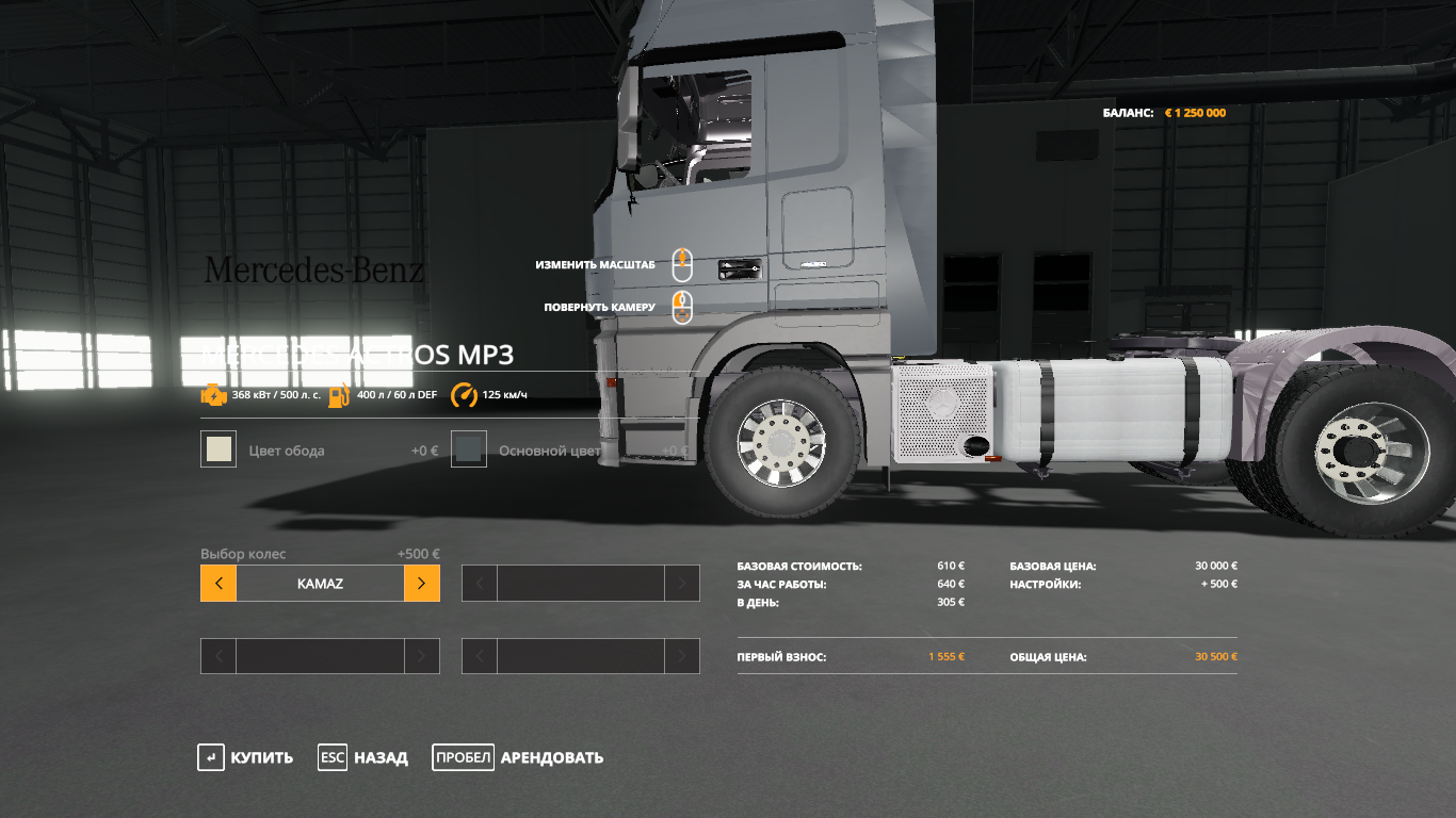 MOD MERCEDES ACTROS MP3 v1.0.0.0 for Farming Simulator 2019 The mod has: Credits: алексей сапунов (alex1985) |