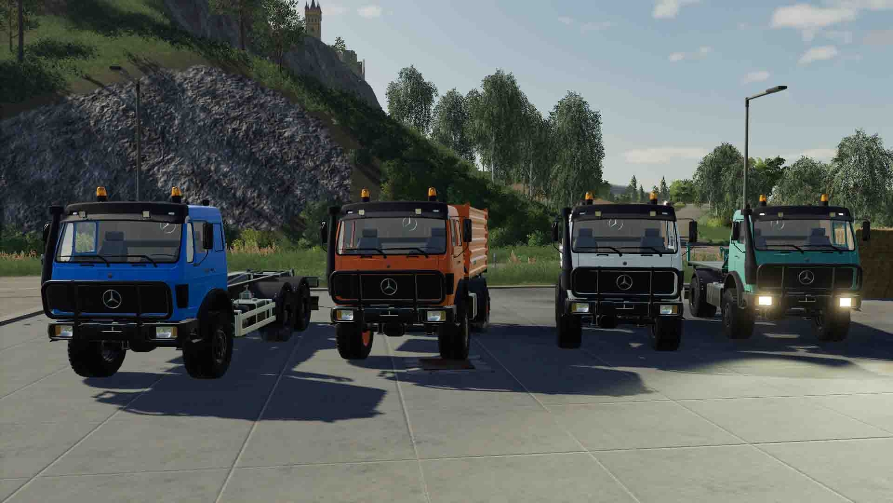 Mod MERCEDES-BENZ AGRAR V1.0.0.0 for Farming Simulator 2019 The mod includes: Mercedes-Benz Agrar 4x4: - Power: 235 kW / 320 hp.; - Speed: 90 km / h; - The volume of the fuel tank: 440 l.; - Cost: 164,000 €; - The choice of the main color; - Choice of rim color; - The choice of body; - The choice of engine; - Fixation belts; - Animated appliances; - Working lighting; - Working mirrors; - leaves traces. Mercedes-Benz Agrar 6x6 with hook grip: - Power: 235 kW / 320 hp; - Speed: 90 km / h; - The volume of the fuel tank: 440 l.; - Cost: 164,000 €; - The choice of the main color; - Choice of rim color; - The choice of engine; - Animated appliances; - Working lighting; - Working mirrors; - leaves traces. Authors: 50keda, CebuljCek, Agroni99, Turbo Modding. Credits: Turbo Modding |