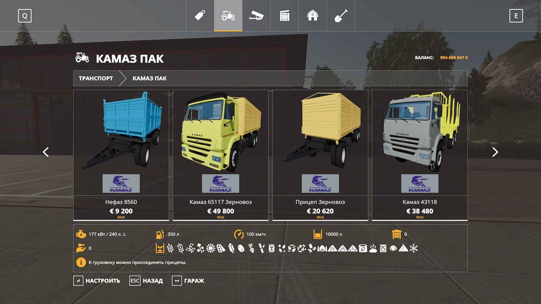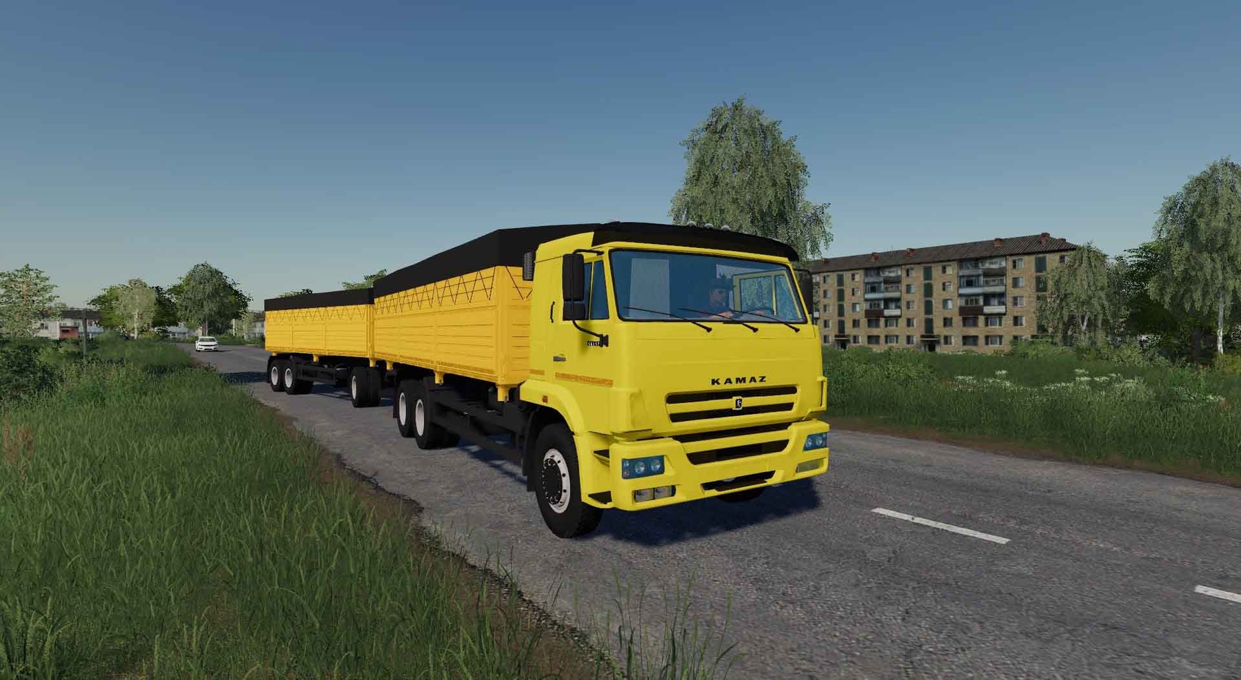 Mod PAK KAMAZ V2.0 for Farming Simulator 2019 The pack includes: - KamAZ-65117 grain truck; - Trailer grain truck; - KamAZ-43118 timber truck; - trailer timber; - KamAZ-54115 tractor; - Semi-trailer grain truck; - Semi-trailer timber truck; - Semi-trailer platform; - Food semitrailer; - KamAZ-53215 barrel; - trailer barrel; - KamAZ-55111 dump truck; - KamAZ-6520 dump truck; - KamAZ-53215 onboard; - KamAZ-6520 ZSK; - Trailer Nefaz-8560; - Tank wagon; - Feldbinder EUT 35.3. Changes v2.0: - Added KamAZ-6520 ZSK. Credits: Eraevgenij, Kerl |