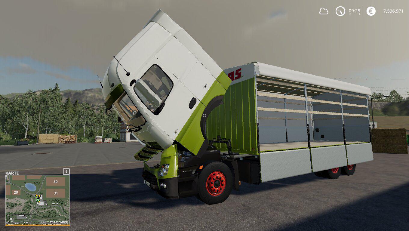 Mercedes has a startup function. It can independently load and unload square and round bales, pallets and egg crates, as well as cotton bags. Also with a forklift or similar. it can be downloaded. (Warning: the dropping sides have a collision)