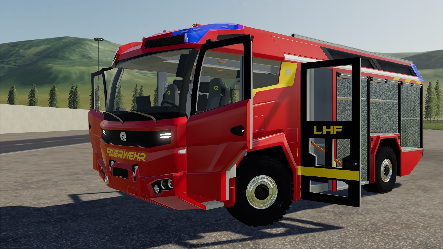 MOD ROSENBAUER REVOLUTIONARY TECHNOLOGY V1.0 FOR FARMING SIMULATOR 2019 - Power: 360 kW / 490 hp; - Speed: 100 km / h; - The volume of the fuel tank: 400 l.; - Cost: 863 547 €; - Color configurations; - License plate configuration; - Configuration of decals; - Support for the "SimpleIC" script; - Animated devices; - Working lighting equipment; - Leaves traces.