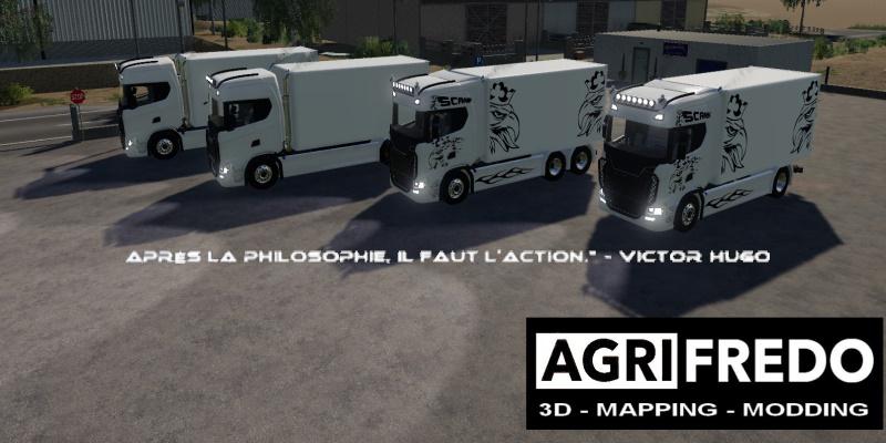 MOD SCANIA FORAIN PACK V1.0.0.0 FOR FARMING SIMULATOR 2019 SCANIA truck package with manufactured goods superstructure for transporting pallets and bales. Credits: AGRIFREDO |