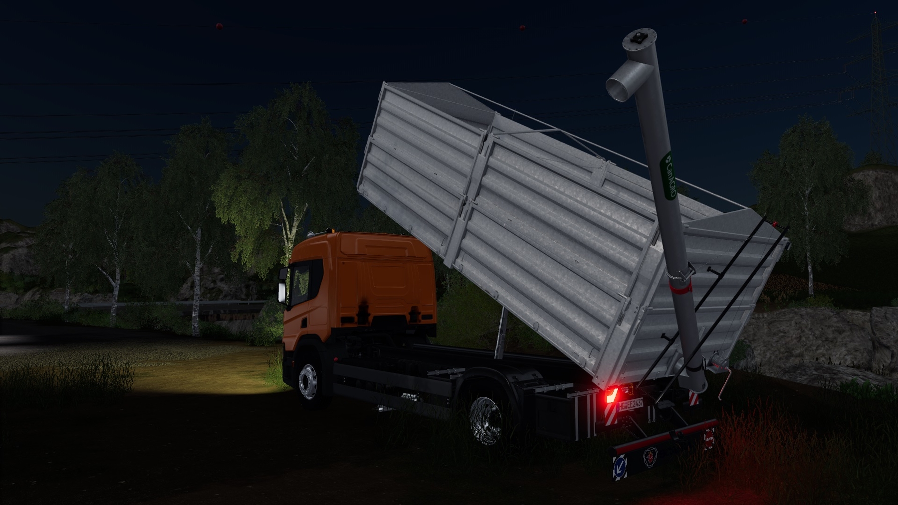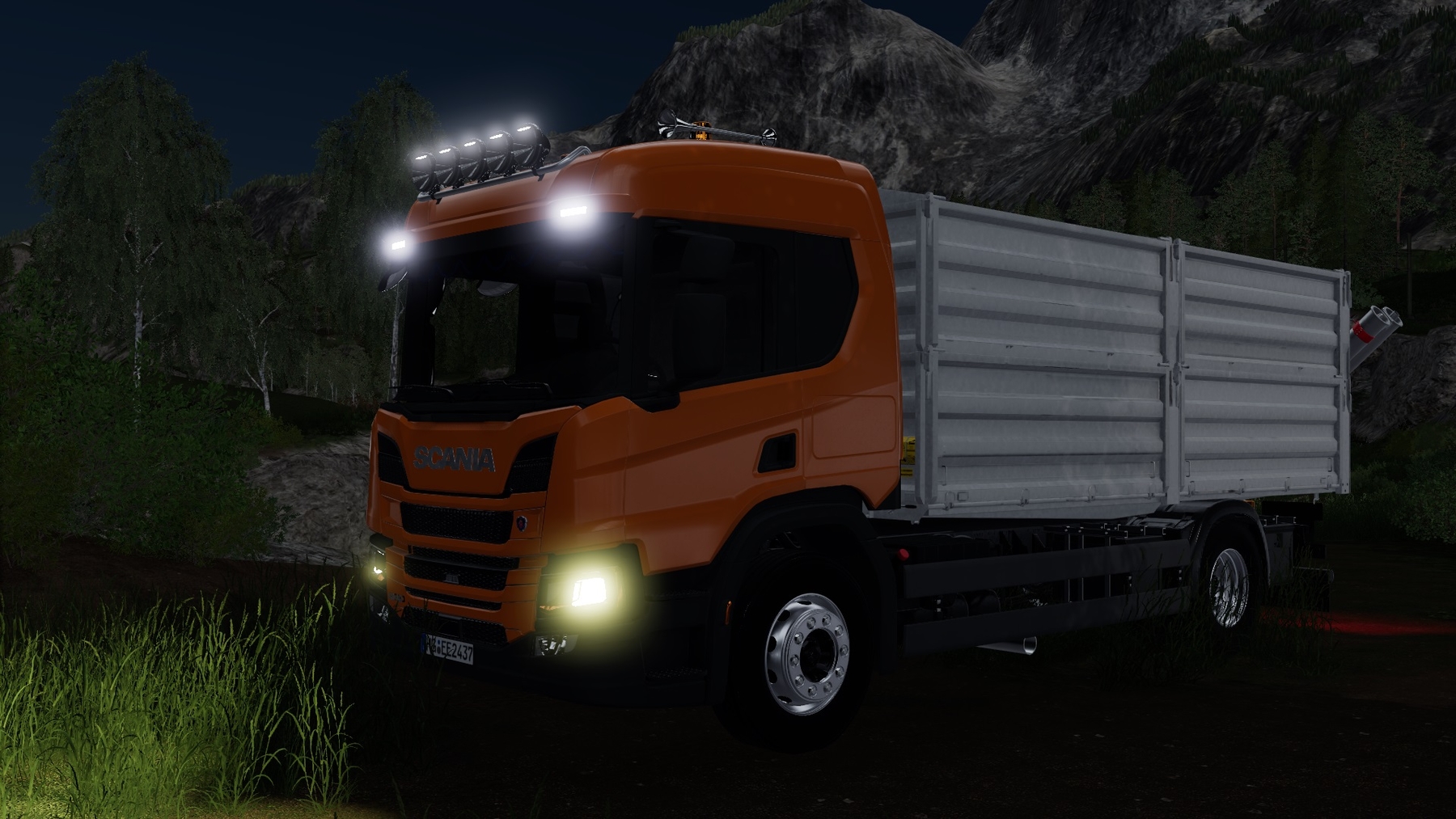 MOD SCANIA NEXT GEN P SERIES GRAIN / OVERLOADER V1.0.0.0 FOR FARMING SIMULATOR 2019 - Power: 162 kW / 220 hp; - Speed: 120 km / h; - The volume of the fuel tank: 440 l.; - Cost: 45,000 €; - Cab color configuration; - Cladding color configuration; - Body color configuration; - Rim color configuration; - Configuration of the transfer pipe; - Lightbar configuration; - Configuration of flags; - License plate configuration; - Wheel configuration; - Engine configuration; - Adjustable mirrors; - Selection of the unloading side; - Removable awning; - Hitch; - Animated instrument panel, mudguard; - Working mirrors; - Working lighting equipment; - Leaves traces; - Gets dirty and washed; - Aging effect; - Body volume: 23,200 liters. Credits: SCS Software, Farm Centro Sul, Rick Black Labele, Noah1735 TWD Modding, Crownzilla.