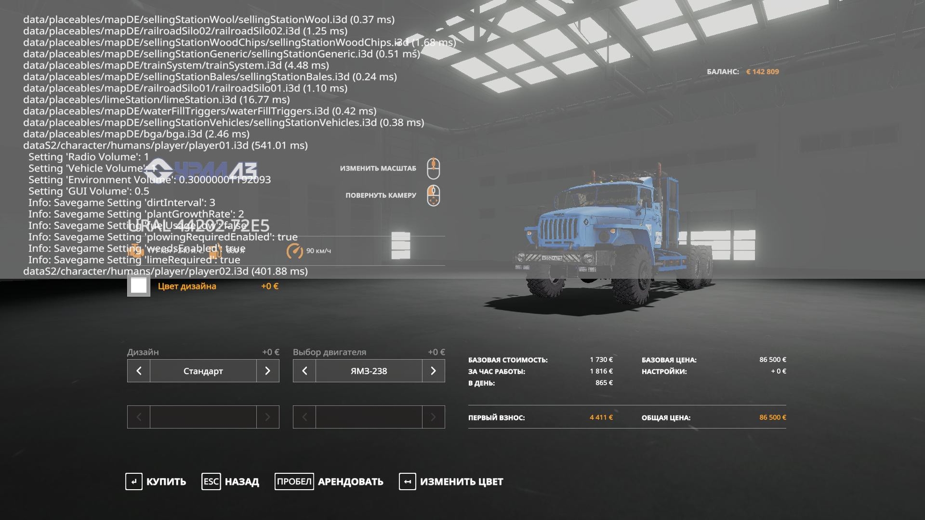 Mod URAL 44202-72E5 V2.0 for Farming Simulator 2019 Made a choice of a shift and platform Added a choice of design color