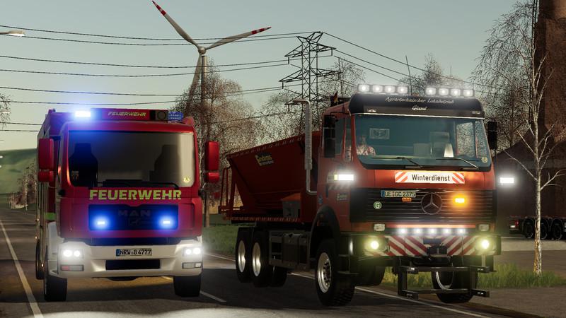 Winter service was built on a Mercedes Unimog 2450 6x6 frame. In addition, minor changes were made to Unimog, such as the FS 19 lighting system. There were also many stickers adapted to the deco and new logos. Winter service Mercedes Unimog 2450 6x6 is designed specifically for the modern farmer. To play, a salt hopper is recommended Here is some feature information: : Need extension of speed camera light !!! : Selectable light bar, new warning lights with flash option Credits: Expendables |