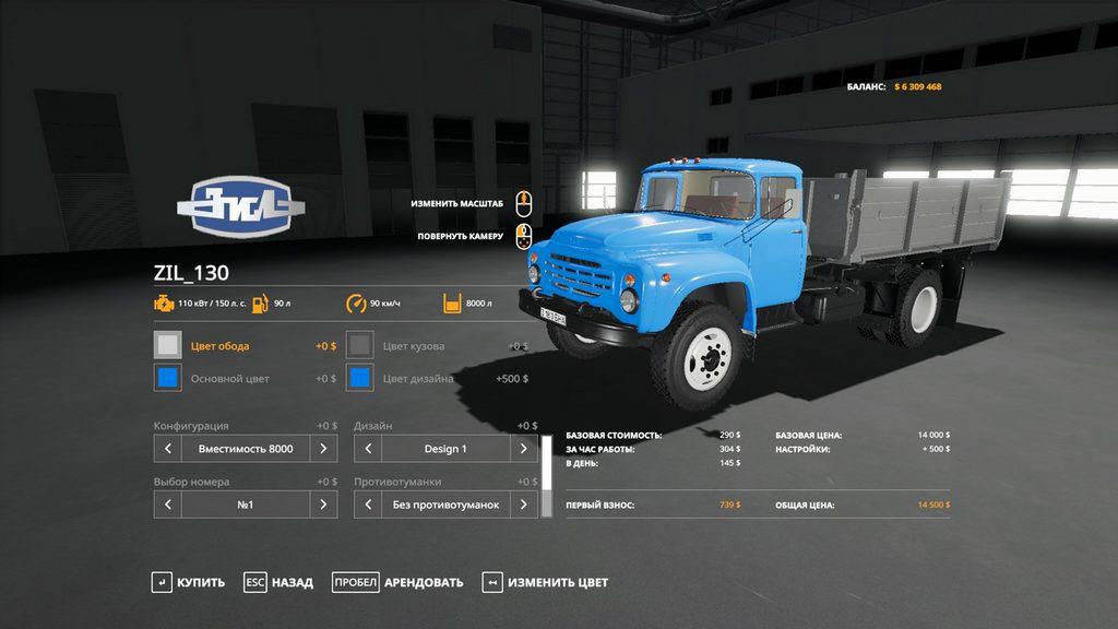 - Choice of the color of the cab, skin, body, ZIL emblem and rim;