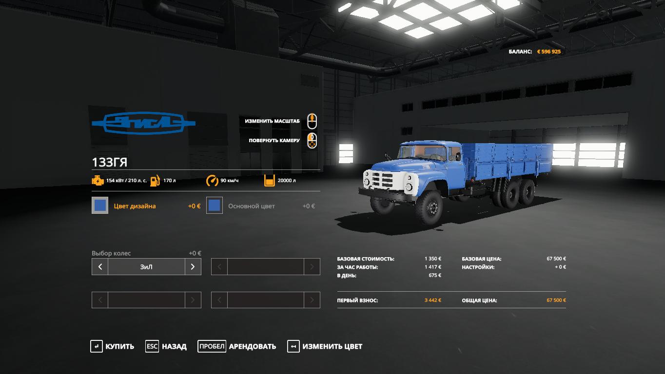Mod ZIL 133 GY V1.0.0.0 for Farming Simulator 2019 Cost - 67500 Speed - 90 km / h Fuel tank - 170 l. Body capacity - 20,000 liters. The tidy is animated. Work light. Wheel selection. Cab color and body color selection. Mod will be improved. Credits: FS19:Санёк DERZ |