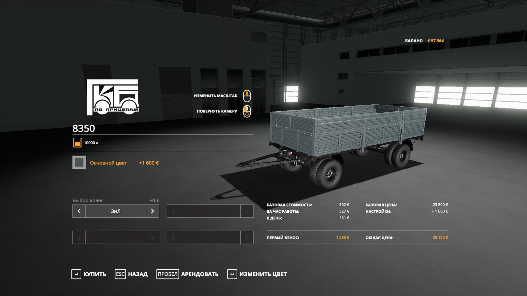 Made the front part of the cab a selectable color Set the engine sound standards Made the mirrors adjustable with the mouse Cost of the truck - 67500 Maximum speed - 90 km / h Fuel tank volume - 170 liters. The volume of the body is 20,000 liters. The dashboard is animated. Working lighting. Choice of wheels (ZIL, KAMAZ). Choice of cab color, body. Cost of the trailer - 23,500. Body capacity - 10,000 liters. Choice of wheels (ZIL, KamAZ) Choice of body color Alteration author: kilibin Other authors: AVSR, Alex Kaiser, Maximka, irakls, FS19: Sanya DERZ