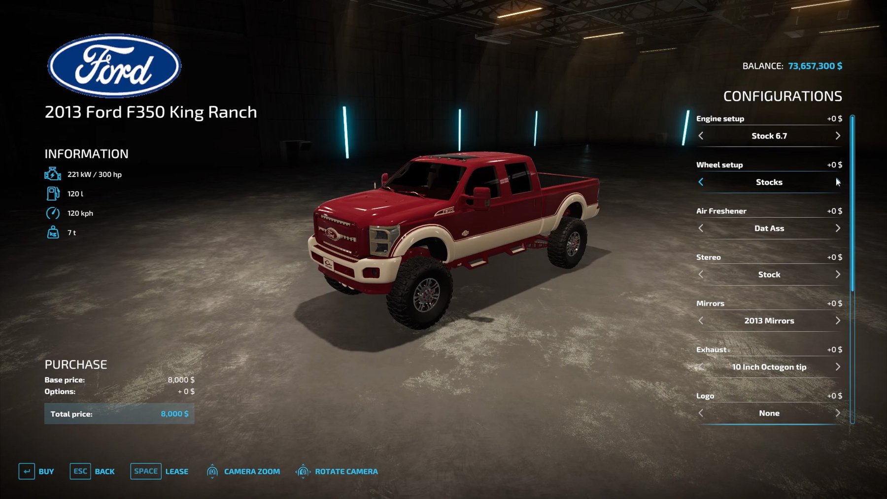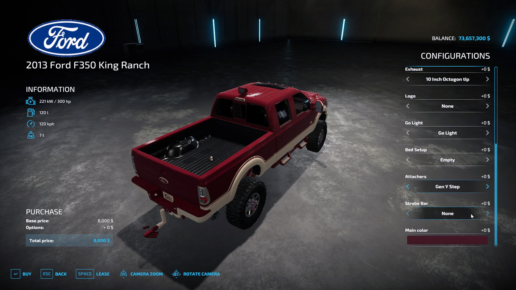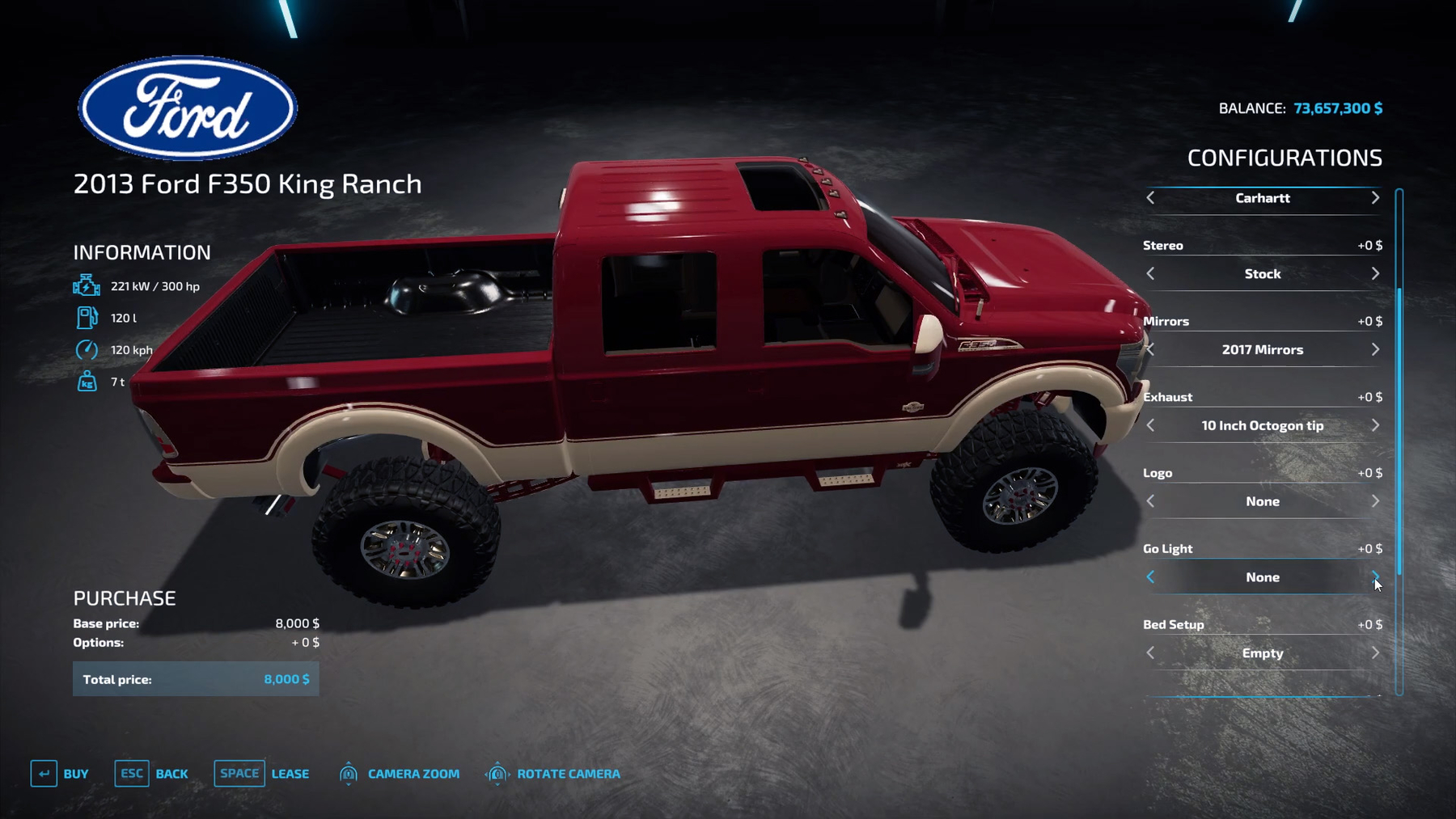 2013 Ford F 350 King Ranch – Power: 300 hp; – Maximum speed: 120 km/h; – Price: 8 000 y.e.;