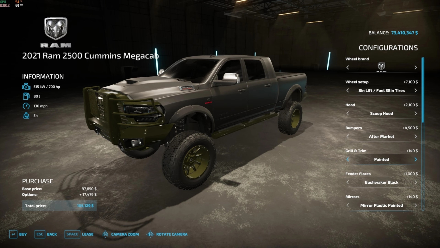 Cummins and Hemi engines. Amazing engine sounds. Lots of suspension options and accessories. VERY clean mod.