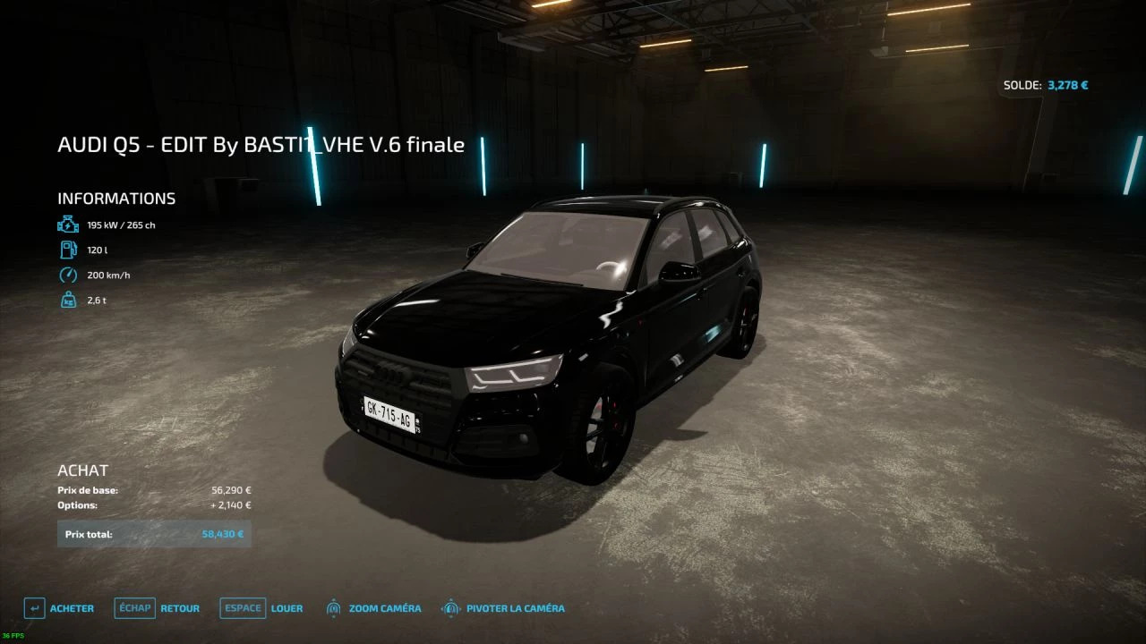 Mod Audi Q5 TFSI 2020 v1.0.0.0 for Farming Simulator 2022 Price 56290, max speed 200 km/h, power 265 hp Credits: BASTI1_VHE |