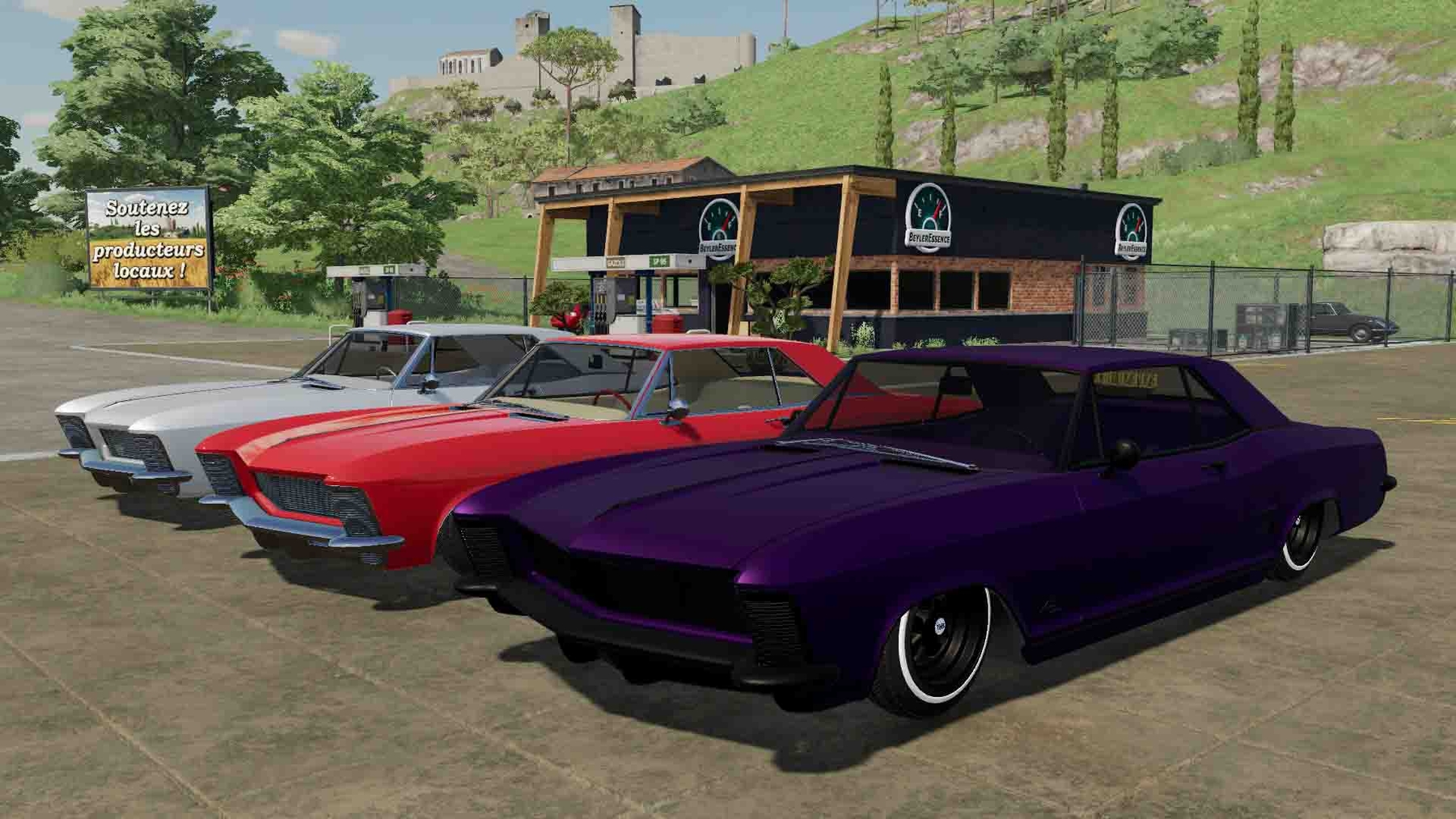 MOD BUICK RIVIERA 1963 V2.2.0.0 FOR FARMING SIMULATOR 2022 - Power: 239 kW / 325 hp; - Speed: 120 km / h; - The volume of the fuel tank: 120 l.; - Cost: 20,000 €; - The choice of the main color; - Choice of design color; - Choice of interior colors; - Choice of rim color; - Wheel configuration; - Engine configuration; - License plate configuration; - Air suspension; - The trunk opens; - Animated devices; - Working lighting equipment; - Working mirrors; - Leaves traces from the wheels; - Gets dirty and washed; - Aging effect.