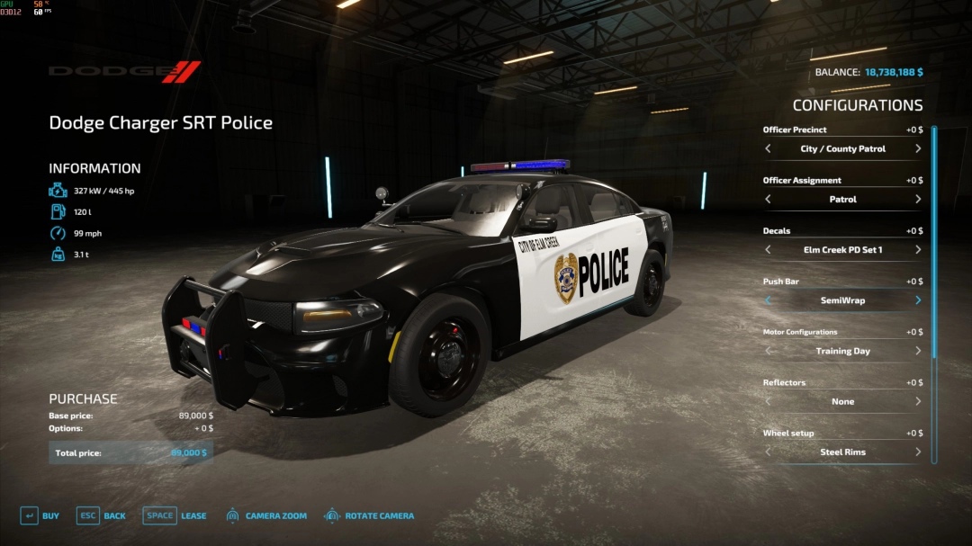 Mod Dodge Charger SRT Hellcat Police Cruiser v1.0.0.0 for Farming Simulator 2022 Price 89000, power 445 hp, max speed 99 km/h, fuel tank 120 l. Credits: GearWrench Edits |