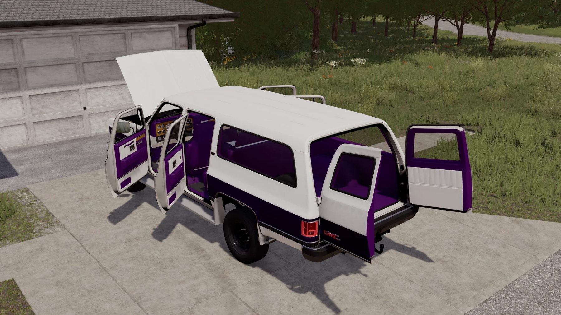 Mod GMC Suburban 1989 v1.0.0.0 for Farming Simulator 2022 1. Description: - Brand: GMC - Price: 15 000 € - Power: 130-210 hp 2. Configurations: - Base color - Design color - Interior color - Rim color - Engine - Bumpers - Bullbar - Trunk - Plates (placement) 3. Animation - All doors - Trunk - hood - Interior animation (pedals, gear lever, knobs, etc.) 4. Other: - Abnormal wear / dirt - Tension belts - Number plates