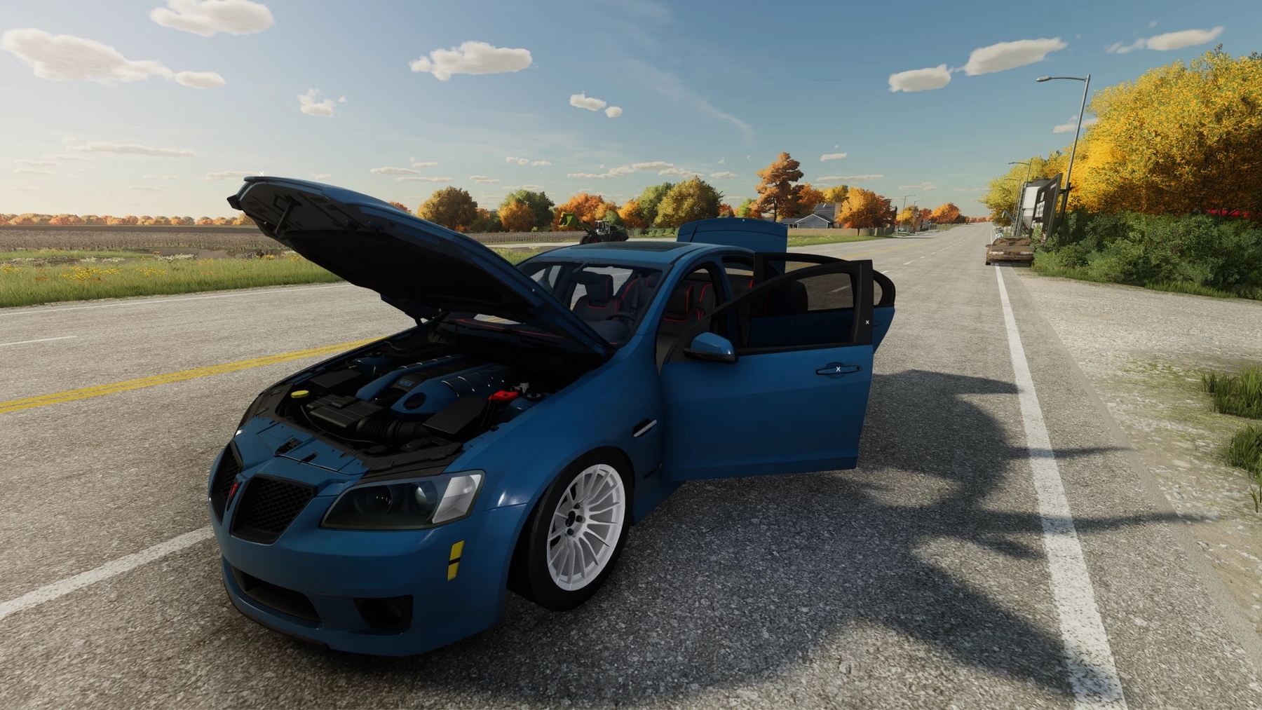 Mod Pontiac g8 v1.0.0.0 for Farming Simulator 2022 Finally managed to convert g8 from fs19 to fs22, I made a new sound and redid the wheel option, a lot less wheels, so smaller file size, first I started converting mine, then started converting Kulibin's edit, just to understand most of his work is not will work in fs22, so now it's half his edit and my original mod? anyway, the car is here! It uses a simple IC to open everything, the cap function opens the gas door to fill it. Credits: SebCroteau |