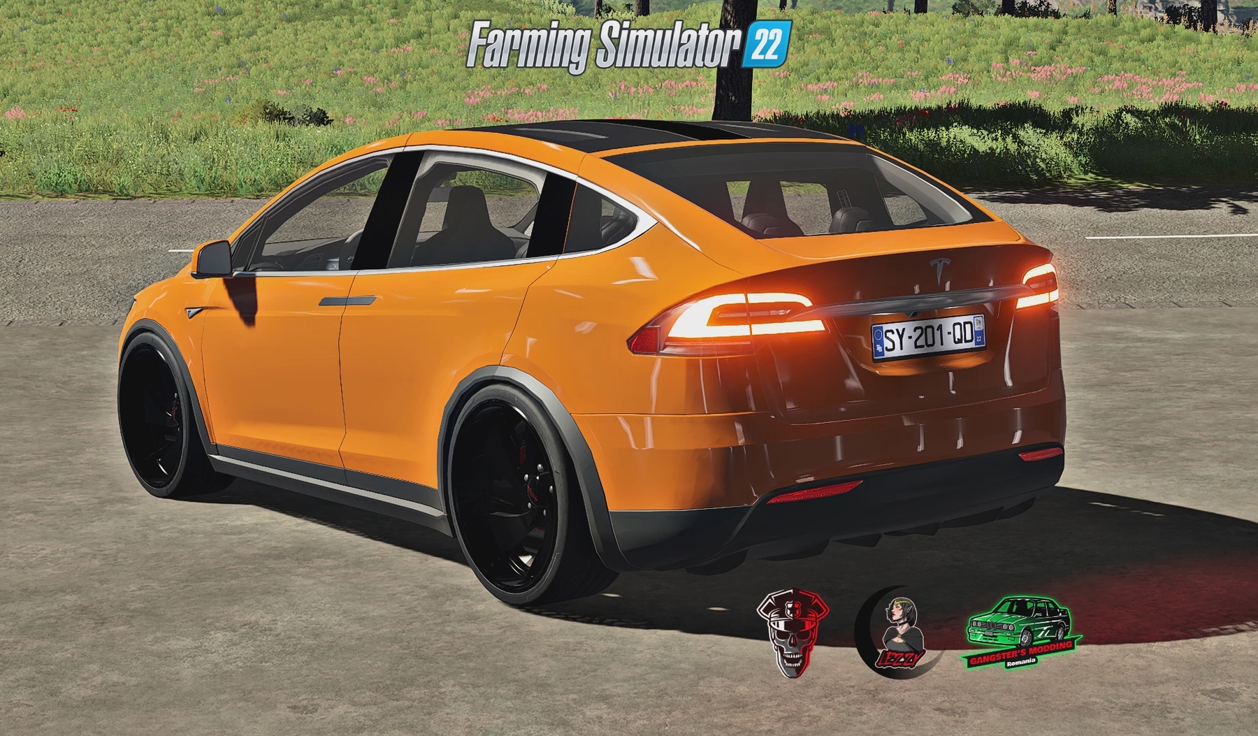 Mod Tesla Model X v1.0.0.0 for Farming Simulator 2022 -Price: 79.500 $ - Speed: 250 km/h - Power : 328 hp -Selectable colors - Trailer hitch