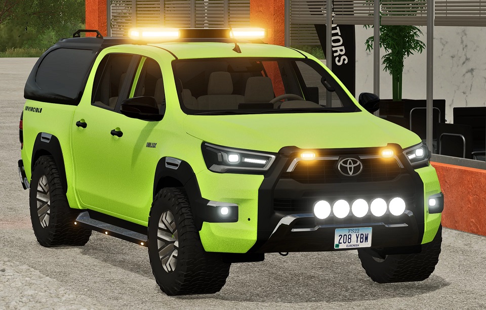 Mod TOYOTA HILUX INVINCIBLE 21 V1.0.0.0 for Farming Simulator 2022 *Added more marklights *Added beaconbar / blitzers *Added frontlights *Added coffin *Added light back at rollbar *Added more colors to body and rims *Added chains * Added passenger. (need kubota DLC) 5 seat passengers ;) *minior bug fix Sheriff Robert & Edwards Modding / Remy Credits: Sheriff Robert & Edwards Modding |