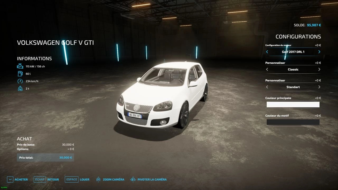Mod Volkswagen Golf V GTI 2006/2008 v1.0.0.0 for Farming Simulator 2022 Price 30000, power 200 hp, max speed 234 km/h, color choice, Credits: BASTI1_VHE DSM |