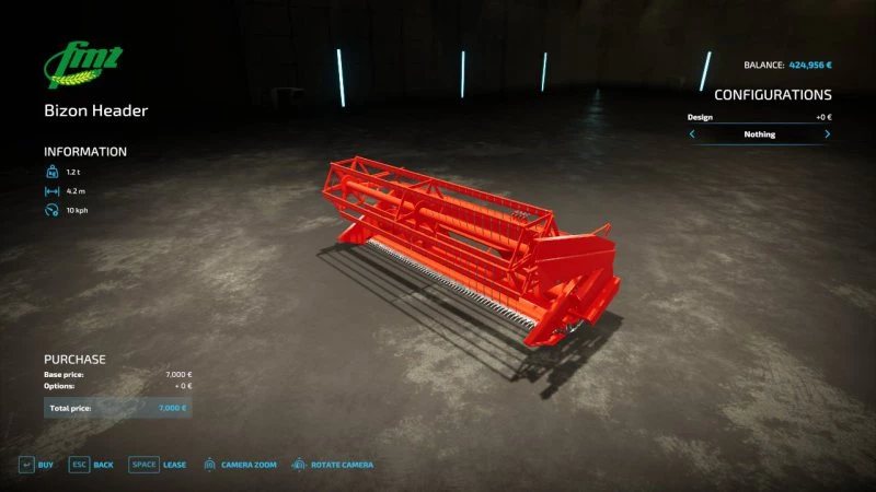 Mod BIZON Z056 WITH CHOPPER v1.0.0.0 for Farming Simulator 2022 Combine Bizon Z056 with a chopper. Bison Z056 Price: 30.000 € Power: 100 HP Maximum speed: 22 km / h Header Bizon Z056 Price: 7.000 € Working width: 4.2 m