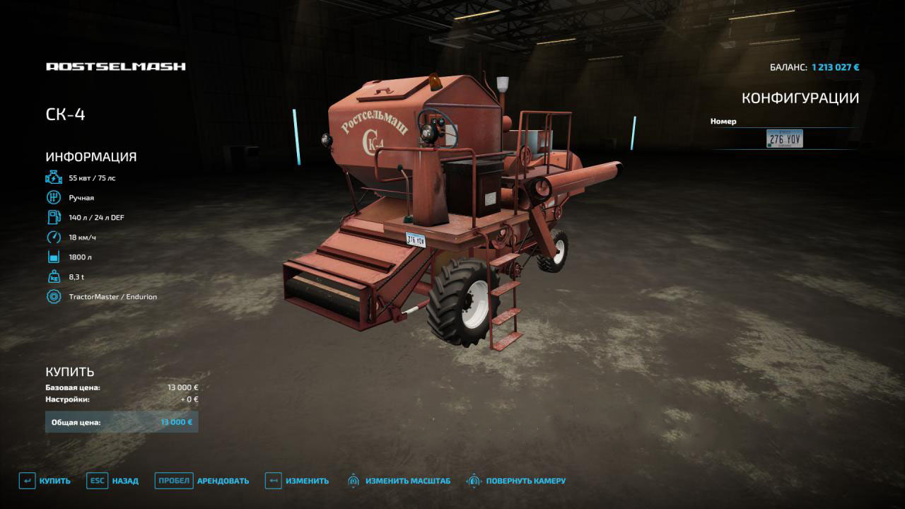 Mod Combine SK-4 v 1.0 for Farming Simulator 2022 - Price: 13,000 euros; - Power 75 hp; - Hopper capacity: 1800 l; - Working lighting equipment; - Animation belts; - Harvesters have collection animation; - Fuel tank: 140 l.; - Manual gearbox.