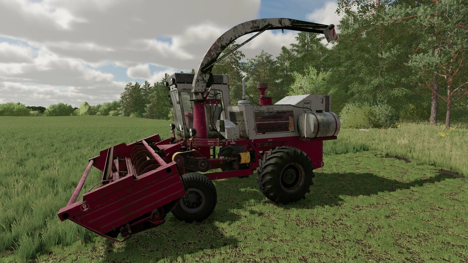 Mod KSK-100A v1.0.0.0 for Farming Simulator 2022 KSK-100 is a Soviet self-propelled forage harvester produced at Gomselmash from 1977 to the early 90s. The most common forage harvester in the USSR in the 80s. Designed for mowing grass, corn and other ensiled crops with simultaneous chopping and loading into transport, as well as picking up swaths. Modifications In 1986, the harvester was modernized and modifications of the KSK-100A and KSK-100A-1 appeared. The latter had a cross-country chassis and a lockable driving axle, which ensures high-quality harvesting on waterlogged peat-bog soils, and the track depth is 2 times less than that of the KSK-100A. Then KSK-100A-2 and KSK-100A-3 were created, as well as modifications equipped with a drum harvester with a working width of 3 m for harvesting corn and other fodder crops: KSK-100A-B, KSK-100A-B. -2, KSK -100A-B-3.