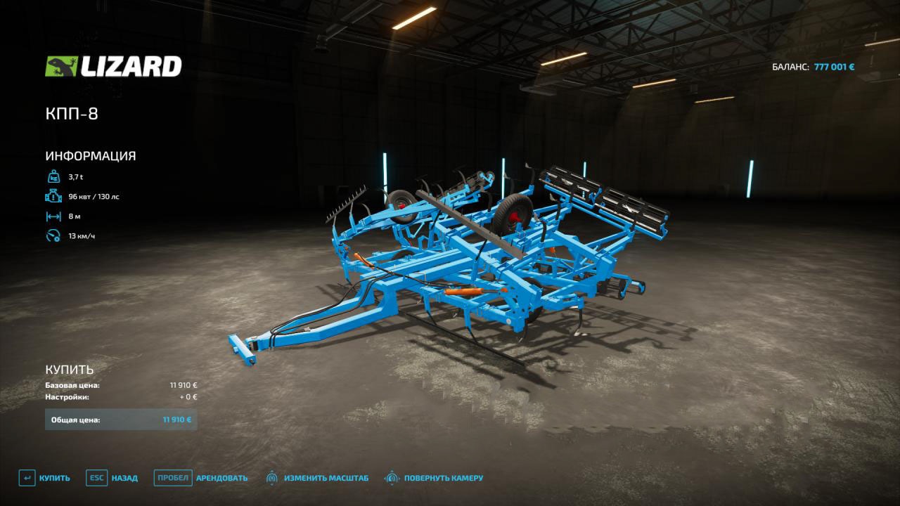 Mod KPP-8 v 1.0 for Farming Simulator 2022 KPP-8 converted from FS19. Normal quality, everything works well. Coverage, m 8.0 Depth of processing, cm 12. Working speed, km / h 9-12 Weight, kg 2850. It is aggregated with tractors, h.p. 120-140