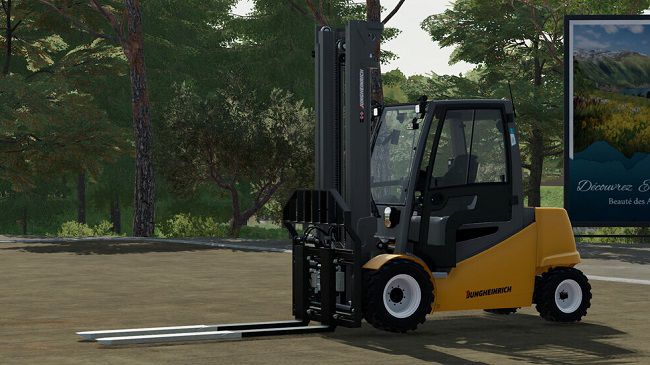 Mod JUNGHEINRICH EFG S50 TELEFORK V1.0.0.0 for Farming Simulator 2022 Mod Features The Jungheinricht EFG S50 now has a 5908mm mast with a maximum lift height of 4885mm. The door can be opened for faster entry and exit. The rear wheel guard is removable. Author: HR Forst und Fahrzeugbau Credits: HR Forst und Fahrzeugbau |