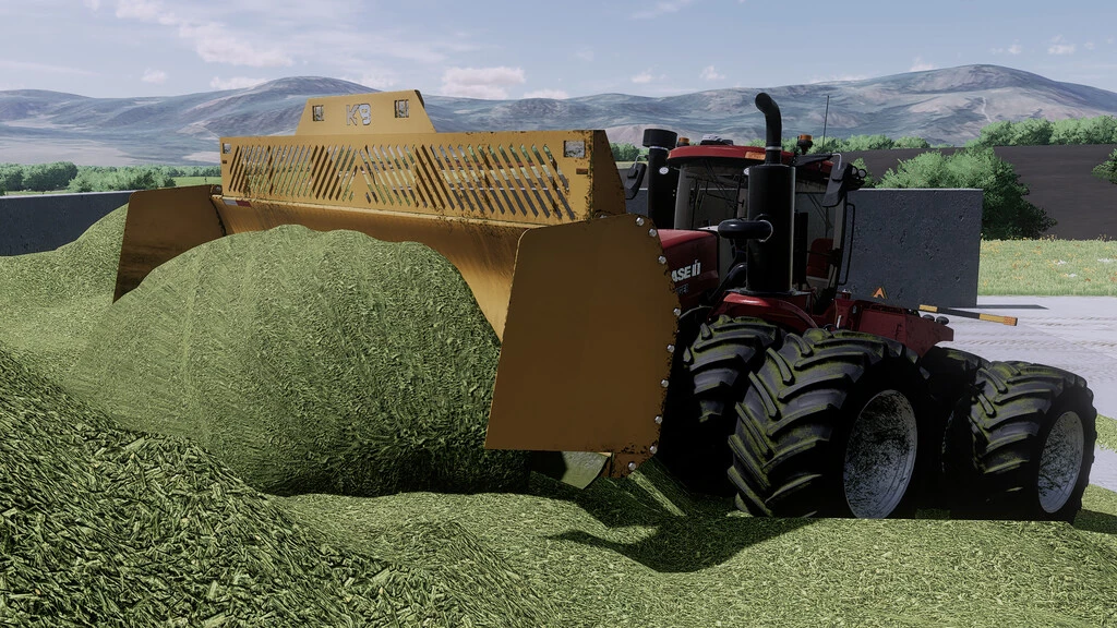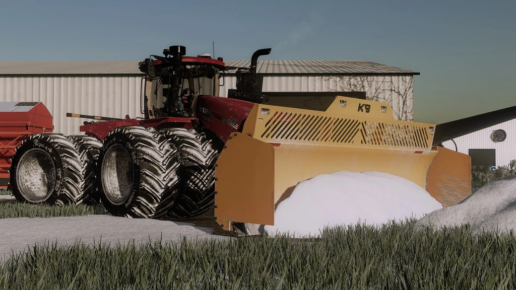 The K9 bulldozer blade is designed for articulated tractors and is an ideal tool for pushing and compacting silage. It uses a parallel lifting system that is designed to lift high and straight while keeping the blade at the perfect angle to push, lift and stack the perfect silo layer. Currently compatible with the following tractor mods: - Price: 22,000 USD. To enable blade attachment to the AFS Connect Steiger Series mod, select "Blade Undermount" in the "Front Options" section of the Stegier store configurations. Credits: KarlFarms |