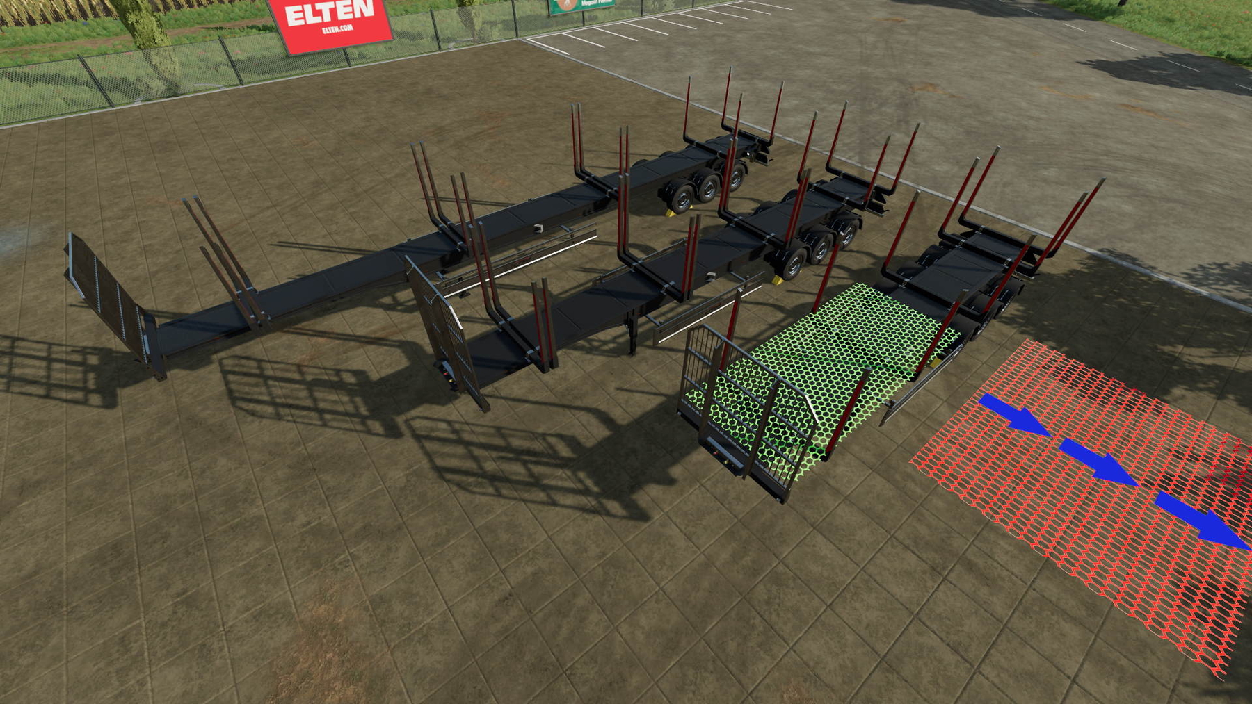 This is a set of three log trailers that have more space between the beds so you can load/unload them with a front end loader or large arm loaders. - Price: $39,000/ $45,000/ $55,000 - Additional berths that can be folded/unfolded when loading short logs into 3 or 4 piles (15m and 20m trailers) - Rear attachment for trailer and trailerLow for all trailers - Edited autoload script ( logs are now sorted into stacks) - You can change the number of stacks of logs on your trailer from 1 to 4 - You can switch between stacks manually - You can show the unloading area to see where the logs will be unloaded. - You can show the loading area to see the current pile - You can move, resize and rotate the unloading area - The number and total mass of loaded logs are displayed in the F1 menu - All controls can be set in your Inputbindings - You can enable/disable help F1, it will be saved as global in xml configuration file. 12m trailer: 1 pile up to 12m, 2 piles up to 6m or 3 piles up to 4m 15m trailer: 1 pile up to 15m, 2 piles up to 7.5m or 3 piles up to 5m or 4 piles up to 3.5m 20m trailer: 1 pile up to 20m, 2 piles up to 10m, 3 piles up to 6.5m or 4 piles up to 5m Controls: KEY_X - fold/unfold extra beds (trailers 15m and 20m) KEY_B - start autoloading KEY_Y - start unloading KEY_O - change side (left/right) KEY_KP_enter - change the number of piles KEY_KP_period - go to the next pile KEY_lctrl KEY_KP_minus - shift the unloading position KEY_lctrl KEY_KP_plus - change the size of the unloading position KEY_KP_0 - rotate the unloading position KEY_KP_multiply - show / hide load position (current pile) KEY_KP_divide - show/hide unload position KEY_lctrl KEY_t - show/hide F1 help controls (saved in xml config file) Changelog 1.1. blue when autoload is active zke, starting with the game patch 1.3.1. If you find any bugs or issues, let me know in the comments and I'll fix it in the next version. Credits: kenny456, Marhu |