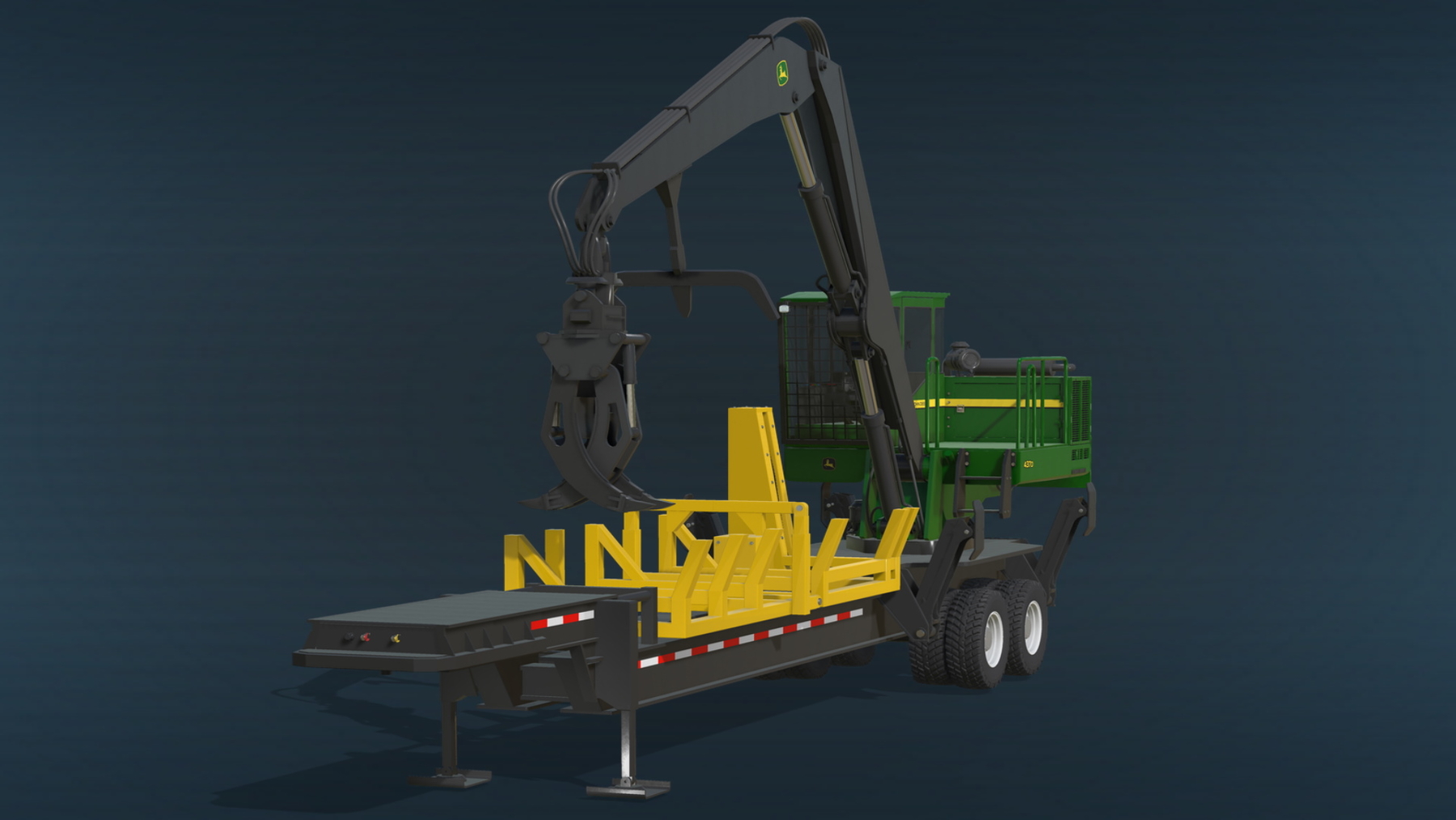 It can be used for loading logs on trailer as well. It is knuckleboom loader type. It allows you to load whole trailer with long tree logs from behind the trailer eg.