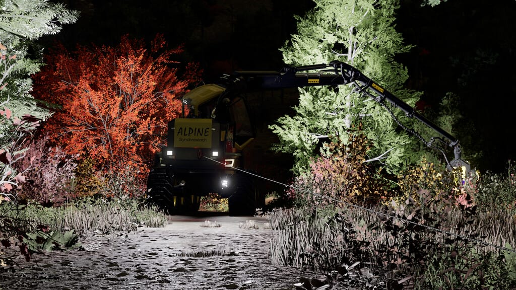 "Synchro" for Ponsse Alpine. The Ponsse traction winch is used to fix the harvester on steep slopes. - Price from: $14,999 Important notes: In version 1.0.0.1: The winch only works with the following mods: Credits: HR Forst und Fahrzeugbau |