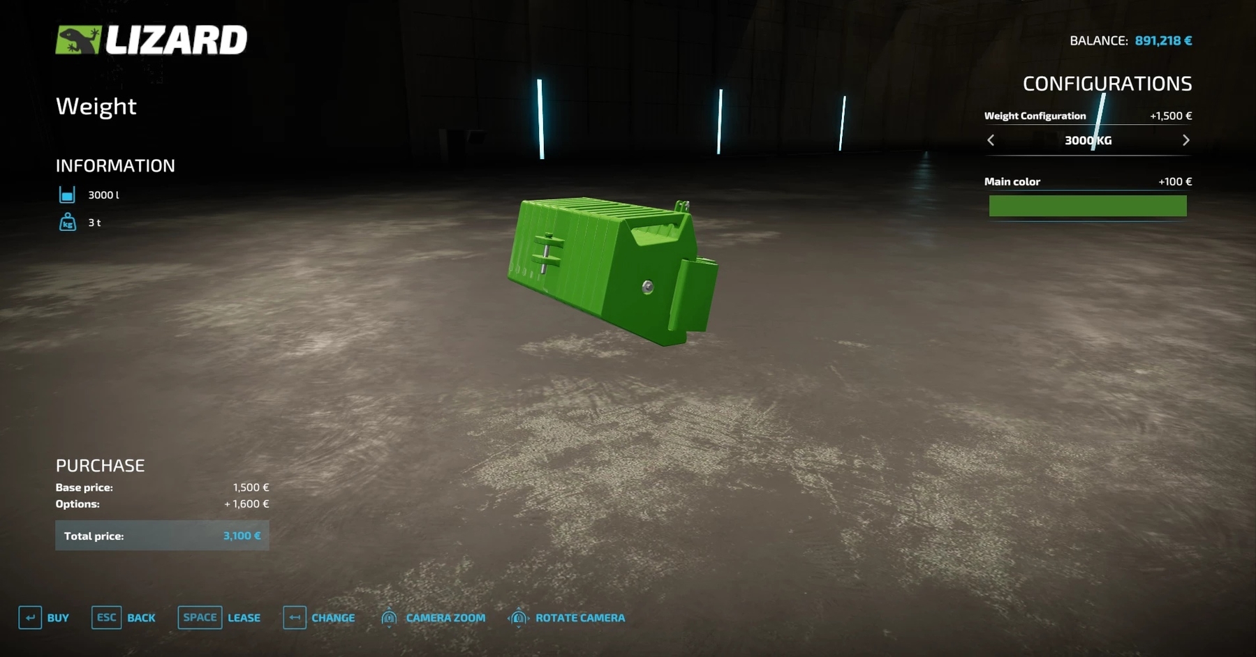 Mod ADJUSTABLE WEIGHT v1.0.0.0 for Farming Simulator 2022 Adjustable counterweight - Base price: 1500 € - Weight: 1000 kg - 3000 kg - Weight configuration - Color configuration