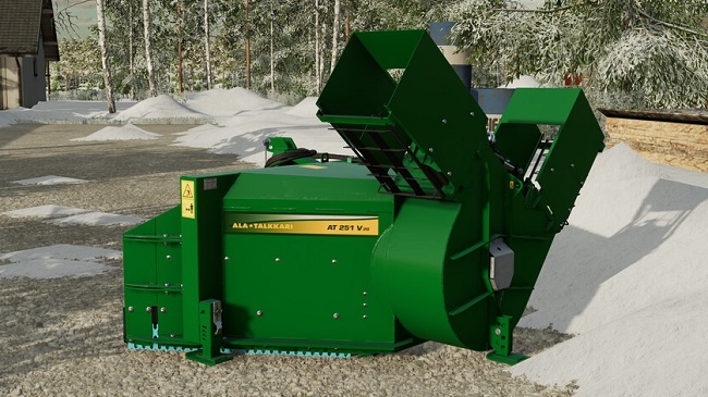 Ala-Talkkari AT-251 V 2G for Farming Simulator 22 is a new V-shaped snowplow in the power range of 90-150 hp, equipped with a gear gearbox. Its rotor has a diameter of 1 meter, which ensures the efficient operation of the blower even in the thickest snow. The default working width of 2.5 meters can be increased to 2.75 meters with additional wings. Snow can be unloaded from both the left and right sides by opening the flaps. Unfortunately, both open doors are only a visual effect, in this state the snow will be discharged from the right side. - Price: $9.990; In version 1.2.0.0: Credits: Farmari99 |