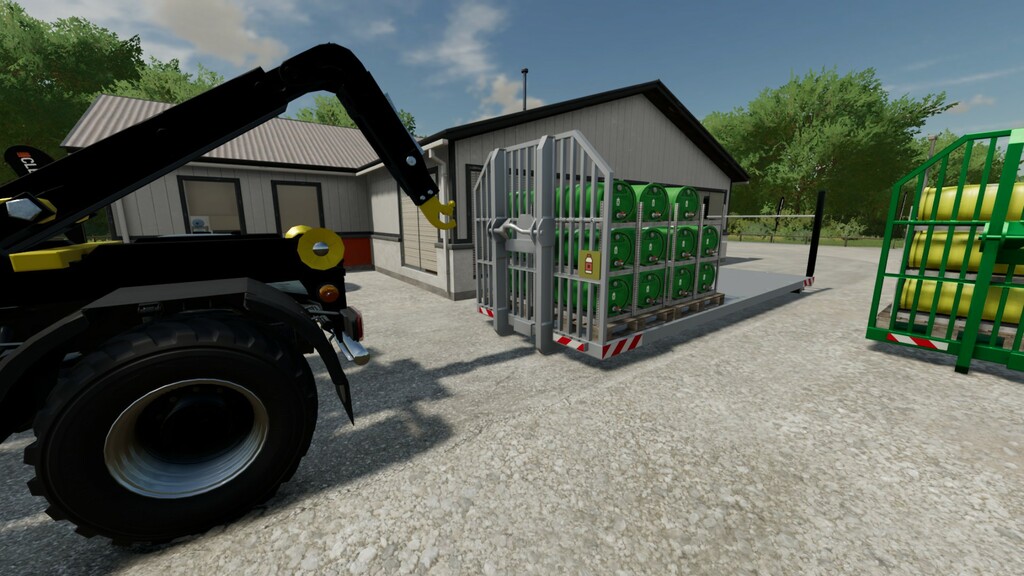 drum pallets for fertilizers, herbicides, diesel fuel and water. With a capacity of 9 pallets of 1500 liters each.