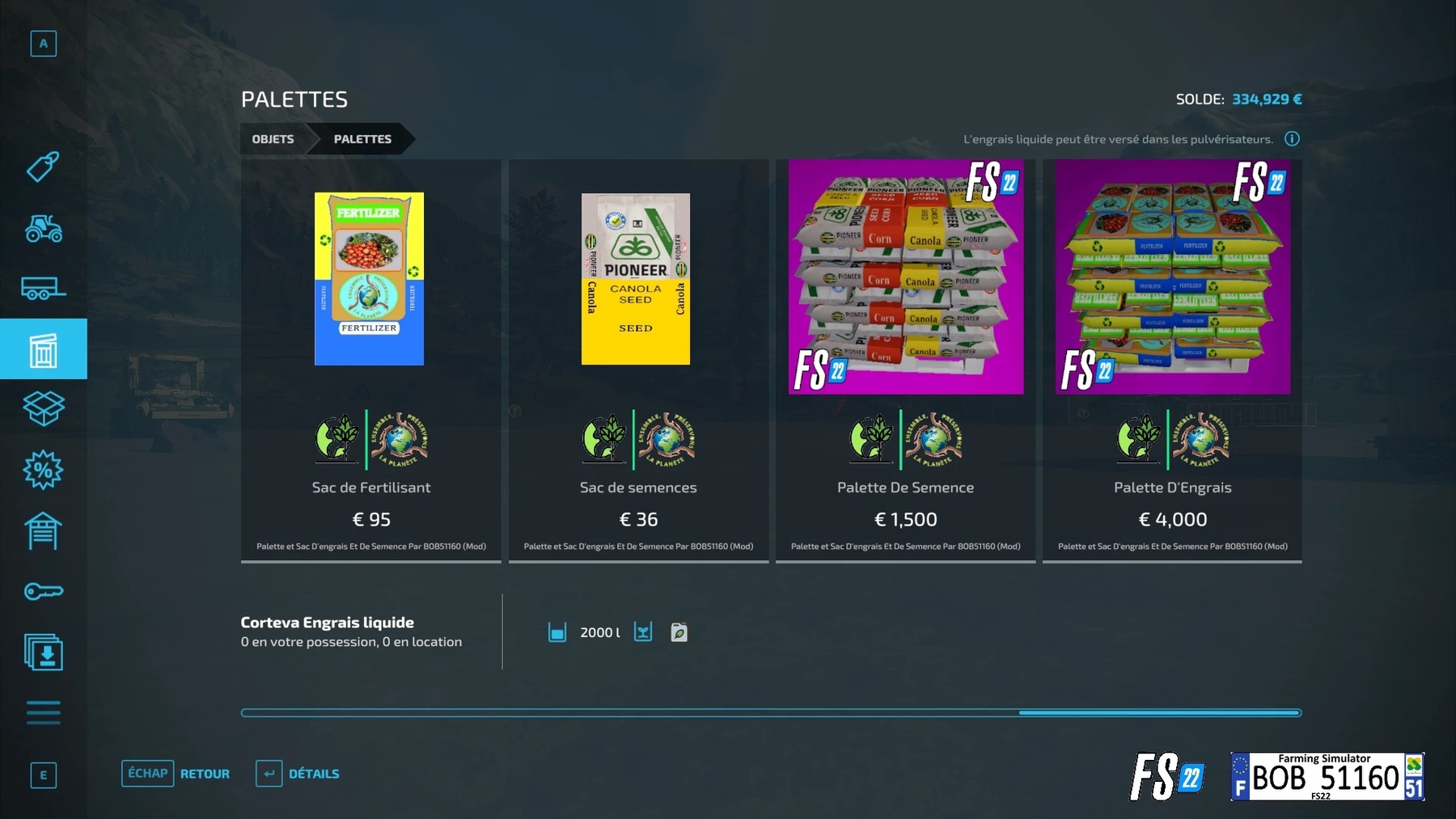 Mod Fertilizer And Seed Pallet Bag By BOB51160 v1.0.0.0 for Farming Simulator 2022 Credits: BOB51160 |