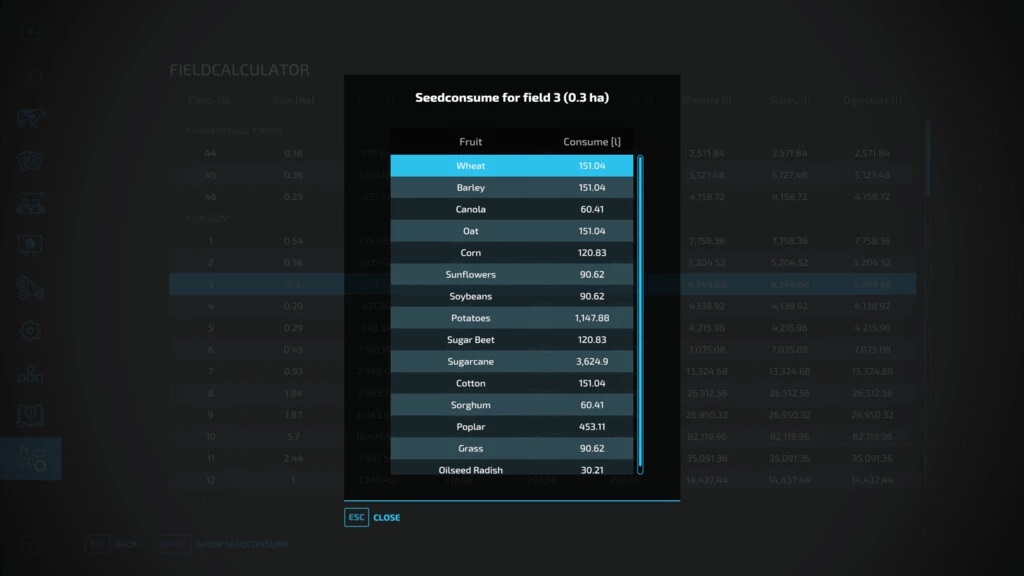 Do you want to know how many seeds or fertilizers you need for the field? You can find out here!