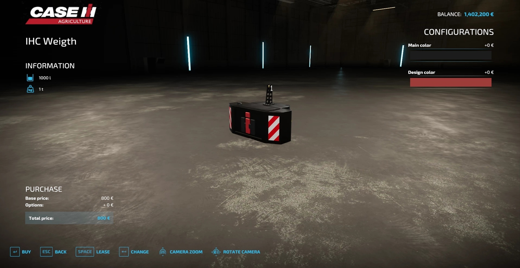 Mod IHC WEIGHT SELFMADE v1.0 for Farming Simulator 2022 This is a homemade counterweight to IHC. Data: weight 1000 kg Color selection configuration Price 800 euros
