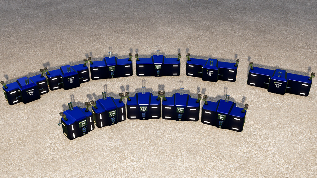 Mod Light Weight v1.0.0.0 for Farming Simulator 2022 12 weights in one plus optional enhanced lighting. Connects to 3PL and trailer hitch so you finally have weight for your telehandler, wheel loader, wheel loader and skid steer loader! Thanks to Hella's Ultra Beam Gen II LED lighting, you can work at night with ease. It's hella good lighting. - Weight options: 100, 250, 500, 750, 1000, 1250, 1500, 1750, 2000, 2500, 3000 and 3500 kg. *Note about shadows. Shadow casting may affect game performance on some systems, including consoles. If you're experiencing low frame rates or stability issues, readjust the shadows in the store. Credits: Mantrid |