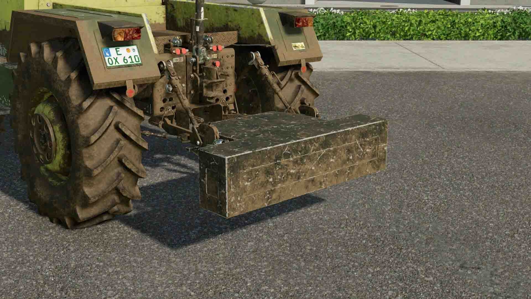 Mod SELFMADE 750KG REAR WEIGHT V1.0.0.0 for Farming Simulator 2022 Homemade rear counterweight weighing 750 kg, made from scrap and a small amount of concrete. Credits: Zinoz LP |