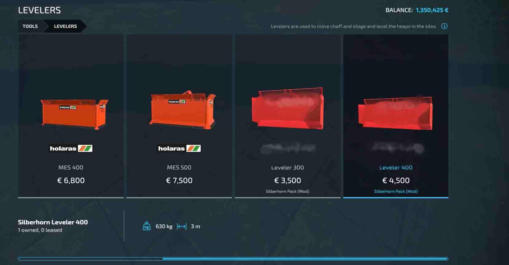 Mod Silberhorn Pack v1.0.0.0 for Farming Simulator 2022 Silberhorn Weight 3000 Price: 2.950 € Silberhorn Silageshield 300 Price: 3.500 € Silberhorn Silageshield 400 Price: 4.500 € Features: Expanding Mesh