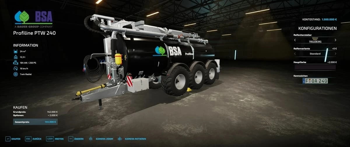 Mod BSA Profiline Güllefässer v1.0.1.0 for Farming Simulator 2022 BSA Profiline PTW200 with 20,000 l and PTW240 with 24,000 l Credits: PATR10T |