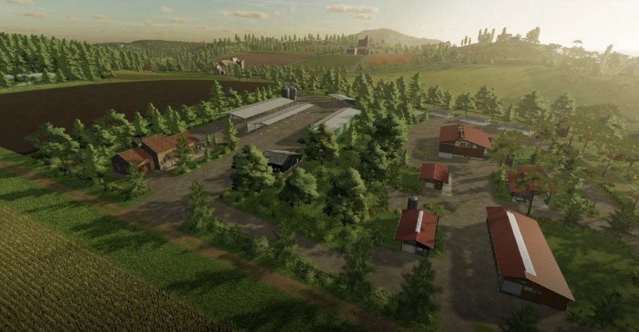 Starter farm - medium sized fields - medium sized animal barns - 3 greenhouses - vehicles.