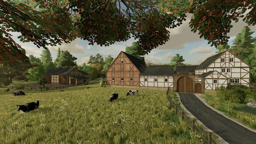 Welcome to Früling, a small fabulous region in central Germany. The fictional map is designed for small and medium-sized cars. There is a beautiful village farm, 14 fields, 6 meadows, 1 forest plot and 1 construction site. In addition, the map is equipped with the most important points of sale and production from the very beginning. There are cows and chickens on the farm. You can also expand your animals: 1 open pasture for cows, 1 beekeeping, 1 sheepfold and 1 paddock for horses are available to you. By the way, the pastures are ready for grazing animals. The farm has 1 silage production (silo), 1 storage of bales and pallets, 1 household plot (strawberries, tomatoes, lettuce), 1 strawberry jam production, 1 cheese production and 1 farm shop with an operating mode. By the way, the farm is the heart of the Fryeling district and is an architectural monument. Thus, the farm cannot be demolished, but you can, of course, expand your business at will, using the adjacent fields and forests, as well as the construction area. An individual construction menu with additional painting textures, trees and plants is available to you. Frühling 2K23 is a detailed and idyllic map where you can relax. True to the motto: Home is where the heart feels good... and if your heart says yes to Frühling 2K23, then I look forward to welcoming you into my little world.