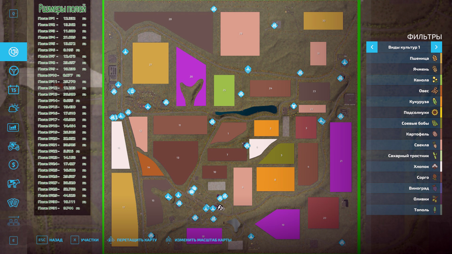 31 Field from 5 ha. up to 52 ha. with the ability to carry out NPC missions.