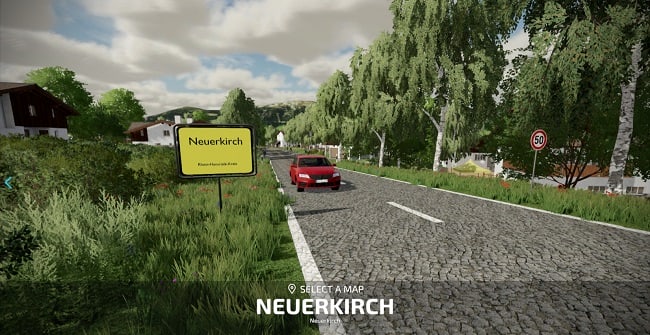 The Neuerkirch map for Farming Simulator 22 is located in the Hunsrück region in the Rhine-Hunsrück region in Rhineland-Palatinate, a region 90% fictional. Fields, roads and land plots are the same as in reality. 73 fields ranging from 0.3 to 21.8 hectares are available to you, 10 of them are meadows.